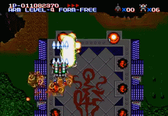 You are playing MUSHA - Metallic Uniframe Super Hybrid Armor from the Sega Genesis games on play retro games where you can play for free in your browser with no download required.