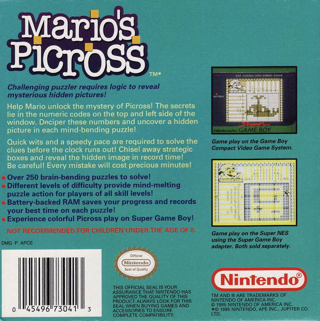 Play Mario's Picross online in your browser and enjoy with Emulator Games Online! Mario's Picross is GB game USA region version that you can play free on our si…