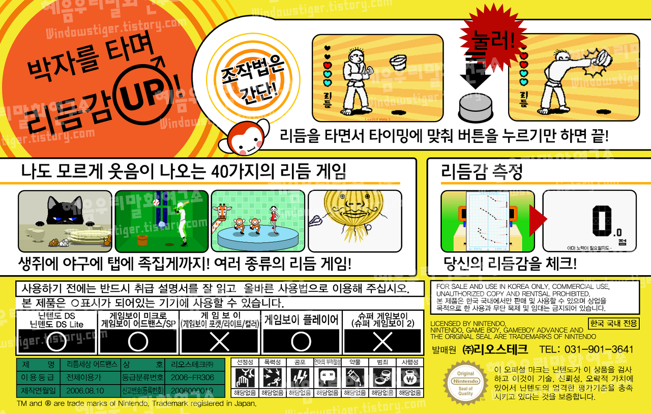 ๋ฆฌ๋ฌ ์ธ์ ์๋ฆฌ์ฆ์ ์ฒซ ์ํ์ผ๋ก GBA๋ก ๋ฐ๋งค๋์๋ค.๊ฒ์์์ ๋์ค๋ BGM์ ๋ฆฌ๋ฌ์ ๋ง์ถฐ ๋ฒํผ์ ๋๋ฅด๋ ๊ฒ์ ๋์ผํ์ง๋ง, 40 ์ข ๋ฅ์ ์คํ ์ด์ง๊ฐ ๊ฐ๊ฐ์ ์์ ๊ณผ ์งํ ๋ฐฉ์์ ๊ฐ์ง๊ณ ์๋ค. ๋๋ถ๋ถ 1~2