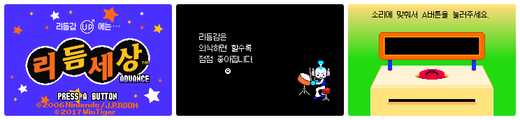 [GBA] 리듬세상 어드밴스 (리듬천국) 한글패치 v1.33 주의사항 1. 해당글에서는 리듬천국 (리듬세상 어드밴스)의 "한글패치 파일"을 배포하고 있습니다. 2. 해당버전은 언제든지 임의로 업데이트가